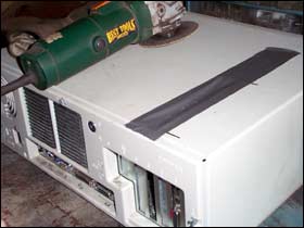 | Nun kann es losgehen. Mit einer Handelsüblichen Flex, die sie bei jedem Computerhändler bekommen, sägen wir das eingezeichnete Stück aus. Seien sie dabei vorsichtig, um den Tower nicht unnötig zu beschädigen. | |||||||||||||||||||||||||||||||||||||||||||||||||||||||||||||||||||||||||||||||||||